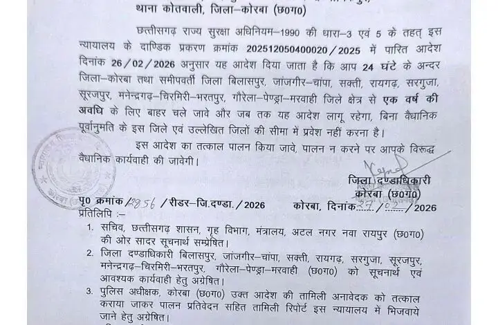 जिले के दो बदमाशों को कोरबा कलेक्टर ने किया जिला बदर , समीप जिलों से रहेंगे दूर ……