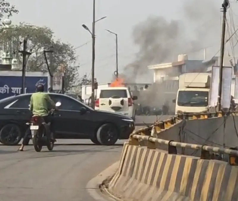 ब्रेकिंग न्यूज़ :- ओवर ब्रिज के ऊपर चलती स्कॉर्पियो में लगी आग, बाल बाल बचा चालक,देखिये वीडियो ………..