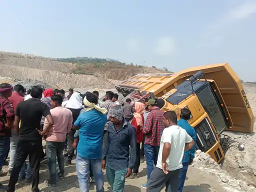 कंपनी का डंपर गिरा गहरे गड्ढे में-डंपर चालक गंभीर , 24 घंटे के अंदर घटित हुई दूसरी घटना…….
