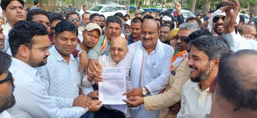 दुकान हटाने की नोटिस पर कांग्रेस ने किया प्रदर्शन….