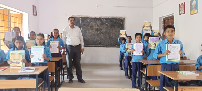 प्राथमिक एवं मघ्य विद्यालयों में नए सत्र में वर्ग 1 से 8 तक के छात्र छात्राओं के बीच पाठ पुस्तक का वितरण…….