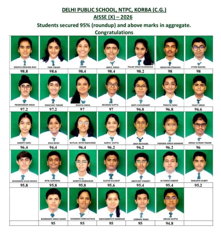 NOW HINDUSTAN. कोरबा जिले के एनटीपीसी-जमनीपाली क्षेत्र अंतर्गत स्थापित और संचालित दिल्ली पब्लिक स्कूल, एनटीपीसी-जमनीपाली ने कक्षा 10वीं (AISSE – 2026) में शानदार प्रदर्शन किया है, इस प्रदर्शन पश्चात पूरे…