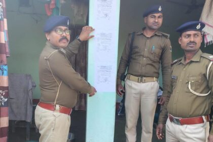 फरार अभियुक्त के घर पहुंच कर पुलिस ने चिपकाया इस्तेहार ……