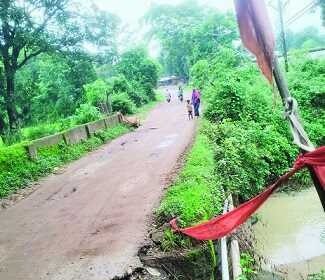 ग्राम कोरकोमा में धंसा पुल का एक छोर,कभी भी हो सकता है हादसा …..