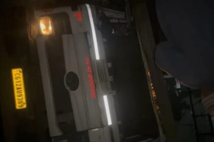 बीच सड़क में पलटा ट्रैलर-बाल बाल बचे लोग , 11 बजे तक नो एंट्री की मांग……