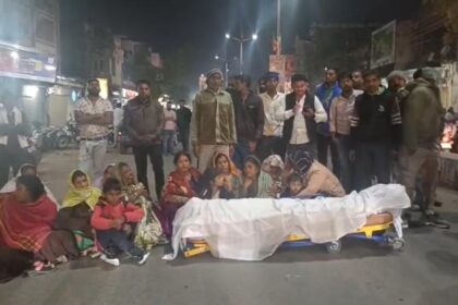 मृत्यु पर भड़के परिजन मुआवजे की मांग को लेकर चौक पर शव रख किया चक्काजाम……