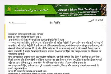 प्रवासी मजदूर की केरल में ‘बांग्लादेशी’ बताकर मॉब लिंचिंग से हत्या, जमात-ए-इस्लामी हिंद उच्चस्तरीय जांच और कड़ी कार्रवाई की मांग…….