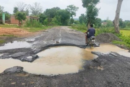 कोरबी-चिरमिरी राष्ट्रीय राजमार्ग पर बने गड्ढे से हादसे का खतरा…….