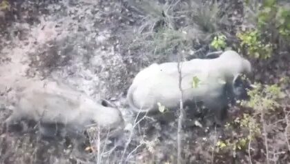 ग्राम कुदमुरा के जंगल में आराम कर रहे हाथी की ड्रोन से की जा रही निगरानी…….