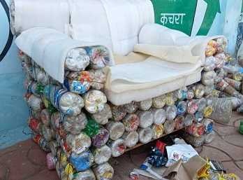 डिस्पोजल व प्लास्टिक की बोतलों से बनाया खूबसूरत सोफा…….