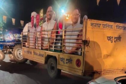 पशु ट्राली में ढोए गए नेताओं के कट आउट मामले में निगम अधिकारियों पर गिरी गाज………