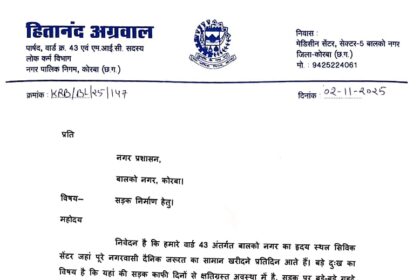 सिविक सेंटर की सड़कों का निर्माण कराए बालको-पूर्व नेता प्रतिपक्ष सह एमआईसी सदस्य हितानंद अग्रवाल……