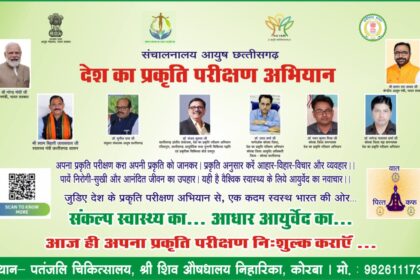 दस दिवसीय निशुल्क प्रकृति परीक्षण, रक्त शर्करा जांच, रक्तचाप जांच एवं प्रकृतिनुसार आहार-विहार-विचार परामर्श एवं उपचार शिविर…….