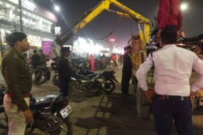 यातायात व्यवस्था सुधारने पुलिस ने बड़ी कार्यवाही करते हुए पाम मॉल के सामने से हटाया खड़े वाहनों को-अज्ञात वाहन जब्त……