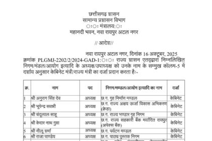 ब्रेकिंग न्यूज छत्तीसगढ़ सरकार ने दिया कैबिनेट राज्य मंत्री का दर्जा……..