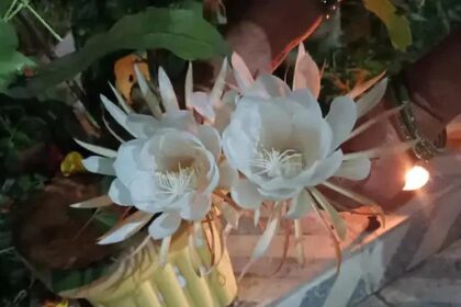 ब्रह्म कमल खिलने पर उसका दर्शन करने जुटी लोगो की भीड़…..