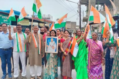 राष्ट्रपिता महात्मा गांधी की तस्वीर और राष्ट्रीय ध्वज के साथ निकाली यात्रा…