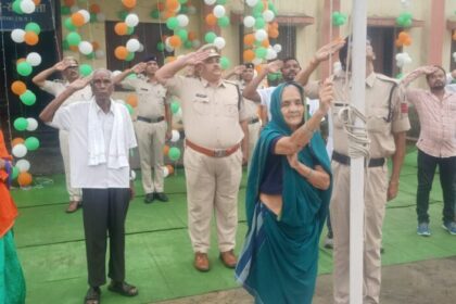 लगभग 98 वर्षीय बुजुर्ग महिला से पुलिस चौकी में किया ध्वजारोहण….
