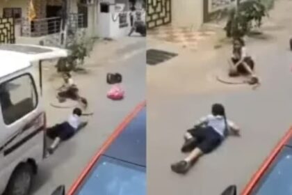 गुजरात के वडोदरा में स्कूल वैन से छात्राओं के बाहर गिरने का वीडियो सामने आया……