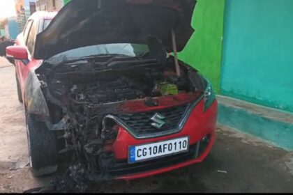 रात 12 के आस पास दो युवकों ने खड़ी कार में लगाई आग….