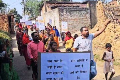 नशा मुक्ति अभियान के तहत हाथों में तख्तियां लेकर महिलाओं ने निकाली रैली, नशे से दूर रहने दिया संदेश….