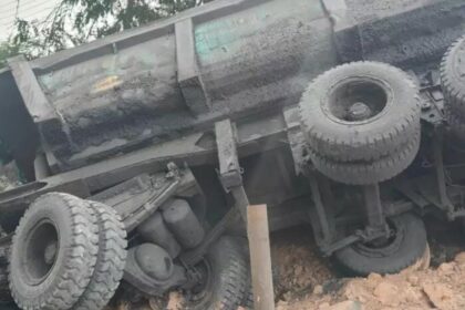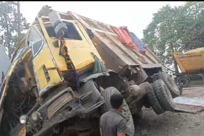 नकटीखार बायपास मार्ग पर बड़ा हादसा , टोयोटा कार शोरूम के सर्विस सेंटर के यार्ड में घुसा हाईवा…..