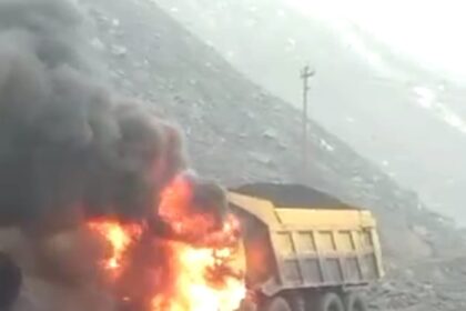 गेवरा खदान में कोयला लोड ट्रक में लगी भीषण आग , ट्रक चालक ने कूद कर बचाई जान….