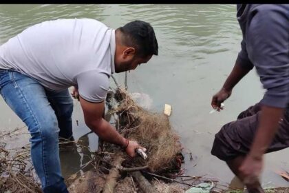 हसदेव नदी रूमगरा नहर में 3 दिन से फंसे अजगर रेस्क्यू टीम ने निकाला