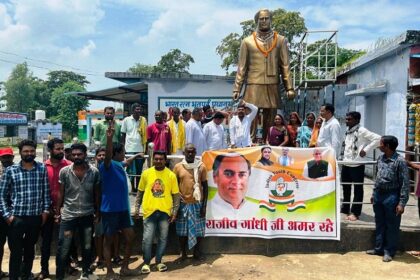 कटघोरा क्षेत्र विधायक पुरषोत्तम कंवर ने ग्राम रंजना में राजीव गांधी की प्रतिमा पर किया माल्यार्पण…