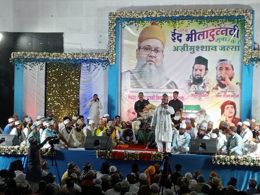 कोरबा- NOW HINDUSTAN. सुन्नी मुस्लिम जमात द्वारा 3 अक्टूबर दिन मंगलवार को अजीमुश्शान जलसे का आयोजन टी.पी इंदिरा स्टेडियम राजीव गांधी ऑडिटोरियम में रात 9 बजे से सुरु हुआ। जलसे में हजारों की संख्या में लोग उपस्थित हुए और जलसे को सुने जलसे की सदारत(अध्यक्षता) कोरबा जिले के शहर काजी सैय्यद सब्बीर अहमद असरफी ने की जलसे में शहजादा-ए- सिमना हज़रत अल्लामा मौलाना मुफ्ती सैय्यद राशिद मक्की मिया साहब किछौछा शरीफ (यूपी) से आये और नूरानी तकरीर किये और कहा की समाज को एक होने की और एकता बनाने की बात कही और हक पे चलने की अपील की साथ ही फ़ितना (फुट)डालने वालों से दूर रहने की गुजारिश की । साथ ही शायरे इस्लाम रईस अनीस शाबरी (यूपी) बिजनौर से आये इन्होंने अपना कलाम पेश किया ,कानपुर से जैनुल आबेदीन व कलकत्ता से जीसान मथुरावी ने अपना कलाम पेस किया ।