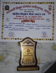 कोरबा NOW HINDUSTAN सरस्वती शिक्षा संस्थान द्वारा मां बमलेश्वरी की पावन धरा डोंगरगढ़ में आयोजित, प्रदेशस्तरीय विज्ञान मेला व वैदिक गणित प्रश्नमंच प्रतियोगिता में चांपा के सरस्वती शिशु मंदिर में अध्ययनरत कक्षा आठवीं की छात्रा कु.अंशिका अग्रवाल साइंस प्रोजेक्ट में रैन वाटर हार्वेस्टिंग मॉडल बनाकर बेहतरीन प्रेंजेटेशन देते हुए रनरअप रहीं। जिंन्हे प्रशस्ति पत्र व मेडल दे कर सम्मानित किया गया ।