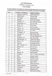NOW HINDUSTAN कोरबा 2023 विधानसभा चुनाव को लेकर कांग्रेस पार्टी ने छत्तीसगढ़ के 53 प्रत्याशियों की सूची जारी की है जिसमें पालीताणा खार विधायक मोहित राम क्रिकेटर की टिकट काटकर दुलेश्वरी सिदार , रामपुर से फूलसिंह राठिया दूसरे को दी गई टिकट है देखिए सूची
