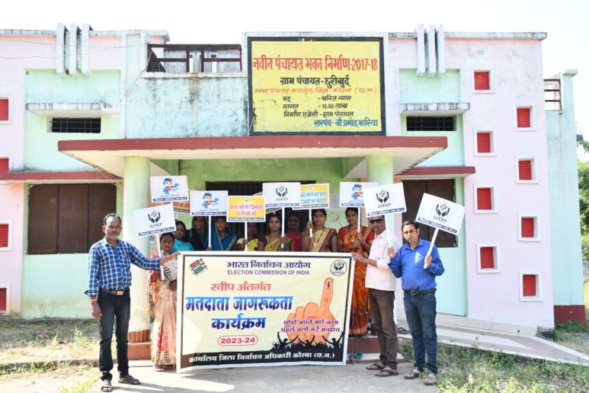 NOW HINDUSTAN. कोरबा कलेक्टर एवं जिला निर्वाचन अधिकारी सौरभ कुमार व मुख्य कार्यपालन अधिकारी जिला पंचायत व जिला स्वीप नोडल विश्वदीप के निर्देशन में सभी विधानसभाओं में लगातार मतदाता जागरूकता अभियान चलाया जा रहा है। इसी कड़ी में विगत दिवस कटघोरा के ग्राम छुरी से लेकर धनरास तक विशेष मतदाता जागरूकता अभियान चलाया गया। अभियान में क्षेत्र के ग्रामीण युवा, बुर्जुग, महिलाओं व पुरुषों की टोली ने पारा मुहल्ला में रैली निकालकर स्लोगन के माध्यम से लोगों को शत प्रतिशत मतदान करने हेतु जागरूक किया।
