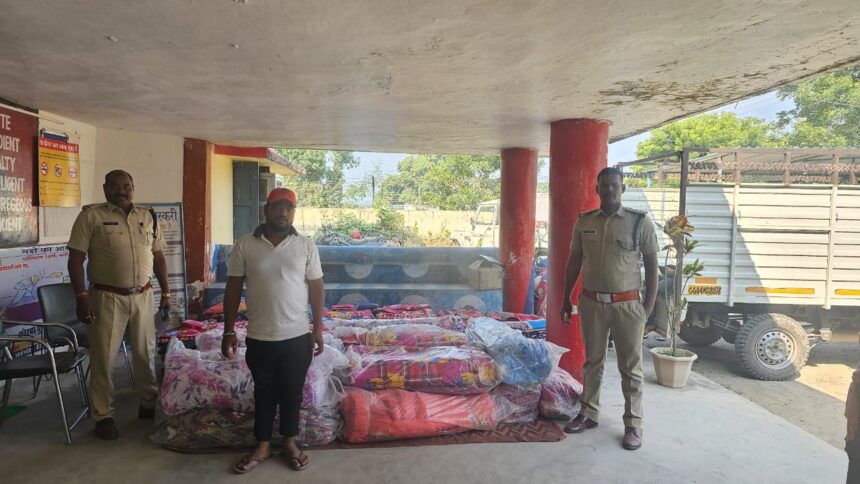 NOW HINDUSTAN कोरबा पुलिस में अवैध कार्यो को रोकने में होड़ लगी है ।एक थाना पुलिस कुछ कार्यवाही करती है कि दूसरा उससे आगे बढ़कर कार्यवाई करने में जुट जाता है । इसी कड़ी में एसडीओपी कटघोरा पंकज ठाकुर एवं थाना प्रभारी बांगो निरीक्षक मनीष चन्द्र नागर, उनि. महासिंह, सउनि सुखलाल सिदार, आरक्षक इतवार कंवर, गजेन्द्रपाल द्वारा मंगलवार की सुबह 08.44 बजे वाहन चेकिंग के दौरान थाना बांगो बैरियर के सामने गणेश कुमार गुप्ता पिता कन्हैया शाह, उम्र 25 वर्ष निवासी ग्राम बरौदा थाना गढहनी, जिला भोजपुर बिहार हामु सिंधी कॉलोनी चाम्पा थाना चाम्पा जिला जॉजगीर चाम्पा छ0ग0 से 1080 नग कटपीश एवं 12 बाई 07 के 1080 चादर कीमती 172800 (एक लाख बहत्तर हजार आठ सौ रुपये को पीकप क्रमांक-04 / एमएस / 8876 में परिवहन करते बरामद कर चादर के संबंध में वैध दस्तावेज प्रस्तुत नही कर पाने पर उक्त 1080 नग चादर को धारा 102 दण्ड प्रक्रिया सहिता के तहत जप्त किया गया ।