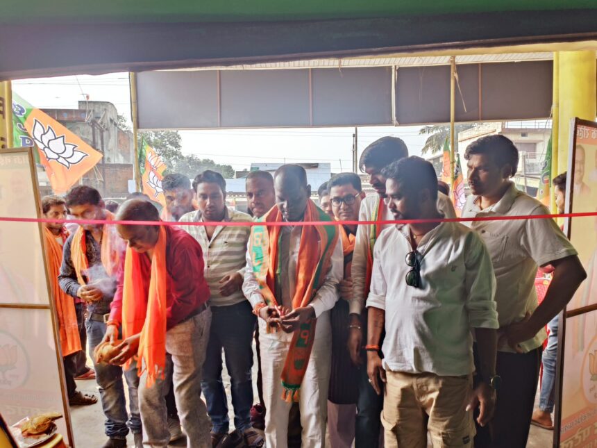 NOW HINDUSTAN प्रत्याशी अपने चुनाव प्रचार के साथ कार्यालय का शुभारंभ कर रहे है । कटघोरा विधानसभा क्षेत्र हरदीबाजार मंडल में 2 नवंबर गुरुवार की सुबह 11:00 बजे भाजपा प्रत्याशी प्रेमचंद पटेल ने चुनाव कार्यालय का रिबन काट उद्घाटन किया गया। वहीं चुनाव कार्यालय उद्घाटन कर लोगो से जन समर्थन की मांग की गई । इस मौके पर मौजूद सभी कार्यकर्ताओं ने संकल्प लिया कि इस बार कटघोरा विधानसभा के कर्मठ जुझारू नेता प्रेमचंद पटेल को प्रचंड मतों से विजयी बनाना है, कटघोरा विधानसभा को भ्रष्टाचार से मुक्त स्वच्छ एवं सुंदर बनाना। भाजपा के चुनाव कार्यालय उद्घाटन से कार्यकर्ताओं उत्सह का संचार देखा गया ।