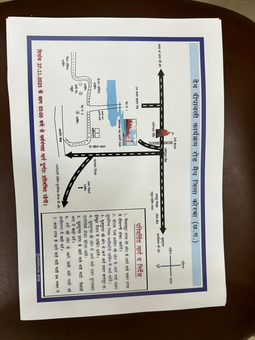 NOW HINDUSTAN.विगत वर्ष की भांति इस वर्ष भी हिन्दू क्रान्ति सेना द्वारा बनारस के गंगा महाआरती की तर्ज पर कोरबा में देव दीपावली को लेकर सोमवार को माँ सर्वमंगला के पावन धरा हसदेव तट पर हसदेव महाआरती का आयोजन किया जाना है हिन्दू क्रान्ति सेना द्वारा इस आयोजन को लेकर पूरी तैयारी कर ली गयी है । वही पुलिस प्रशासन ने भी हिन्दू क्रान्ति सेना के साथ मिलकर यातायात को लेकर रूट चार्ट जारी कर दिया है । जिसमे दोपहर 3 बजे से भारी वाहनों को रोकने के साथ ही अलग अलग जगहों पर पार्किंग की व्यवस्था की गयी है ।