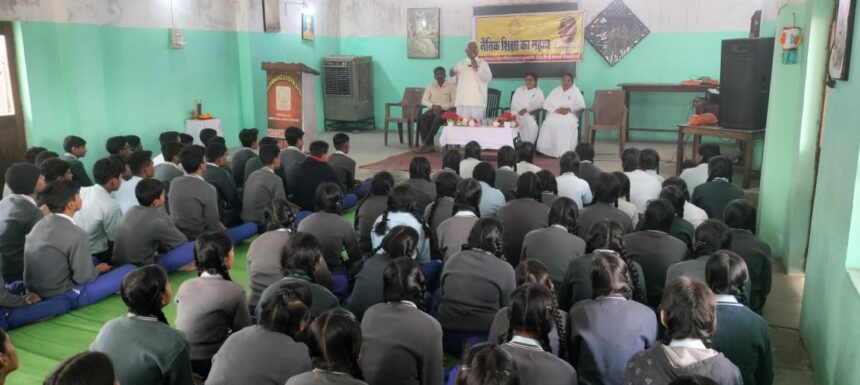 NOW HINDUSTAN गुणवान बच्चे देश की सच्ची सम्पति हैं। विद्यार्थियों के सर्वांगिण विकास के लिए भौतिक शिक्षा के साथ-साथ नैतिक शिक्षा की भी आवश्यकता हैँ। नैतिक शिक्षा से ही चरित्र का निर्माण होता है । चरित्र निर्माण ही शिक्षा का मूल उद्देश्य हैं।भोतिक शिक्षा भौतिकता की ओर धकेल रही है| वर्तमान बच्चो को संस्कारित बनाने के लिए भौतिक शिक्षा के साथ नैतिक शिक्षा की आवश्यकता हैं।नैतिक शिक्षा से नैतिकता आएगी । वर्तमान में बच्चो को अच्छे संस्कार कि आवश्यकता है । उक्त उदगार माउंट आबू राजस्थान से पधारे हुए प्रजापिता ब्रह्माकुमारी ईश्वरीय विश्व विद्यालय के राजयोगी ब्रह्माकुमार भगवान भाई ने कहीं । वे सर्व मंगला विद्यालय, झाबर में सभी छात्राओ और शिक्षक को जीवन में नैतिक शिक्षा का महत्त्व विषय पर बोल रहे थे ।