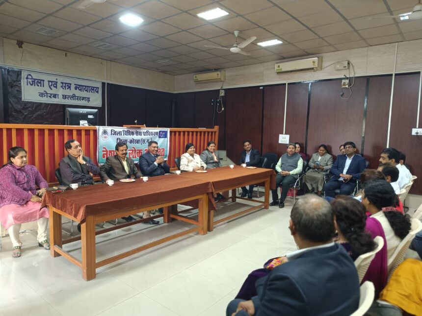 NOW HINDUSTAN राष्ट्रीय विधिक सेवा प्राधिकरण (नालसा) एवं छत्तीसगढ़ राज्य विधिक सेवा प्राधिकरण बिलासपुर के निर्देशानुसार जिला विधिक सेवा प्राधिकरण कोरबा द्वारा जिला एवं तहसील स्तर पर 16 दिसम्बर 2023 को सभी मामलों से संबंधित नेशनल लोक अदालत का आयोजन किया गया। डी0एल0 कटकवार, जिला एवं सत्र न्यायाधीश/अध्यक्ष जिला विधिक सेवा प्राधिकरण कोरबा के आतिथ्य में एवं विशिष्ठ अतिथि अपर सत्र न्यायाधीश कु. संघपुष्पा भतपहरी, अपर सत्र न्यायाधीश (एफ.टी.सी.) कोरबा श्रीमति ज्योति अग्रवाल, द्वितीय अपर सत्र न्यायाधीश कृष्ण कुमार सूर्यवंशी मुख्य न्यायिक मजिस्ट्रेट कोरबा अश्वनी चतुर्वेदी तृतीय व्यवहार न्यायाधीश, बृजेश राय प्रथम व्यवहार न्यायाधीश वर्ग एक कोरबा के अतिरिक्त व्यवहार न्यायाधीश, श्रीमती प्रतिक्षा अग्रवाल, व्यवहार न्यायाधीश वर्ग दो मंजीत जांगडे, संजय जायसवाल, अध्यक्ष, जिला अधिवक्ता संघ, कोरबा, बी.के. शुक्ला, सदस्य, छ0ग0 राज्य विधिज्ञ परिषद बिलासपुर, श्रीमती रंजना दत्ता, अध्यक्ष, उपभोक्ता फोरम, मानसिंह यादव, चीफ लीगल एड डिफेंस कौंसिल सिस्टम कोरबा दीप प्रज्जवलन कार्यक्रम में उपस्थित थे। नालसा थीम सांग न्याय सबके लिये के साथ नेशनल लोक अदालत का शुभारंभ किया गया। जिसमें न्यायालय में कुल 10724 प्रकरण रखे गये थे, जिसमें न्यायालयों में लंबित प्रकरण 2300 एवं प्री-लिटिगेशन के 8424 प्रकरण थे। जिसमें राजस्व मामलों के प्रकरण, प्री-लिटिगेशन प्रकरण तथा न्यायालयों में लंबित प्रकरणों के कुल प्रकरणों सहित 4370 प्रकरणों का निराकरण नेशनल लोक अदालत मंे समझौते के आधार पर हुआ।