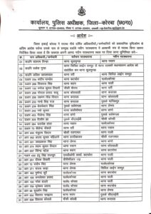 कोरबा। पुलिस कप्तान जितेंद्र शुक्ला ने जिला पुलिस बल में पदस्थ 3 एएसआई समेत 47 पुलिस कर्मियों का तबादला आदेश जारी किया है। जिसमें लंबे समय से एक जगह जमे अधिकारियों और कर्मचारियों को दुसरे थाना चौकी में पदस्थ किया गया है।। देखें लिस्ट…