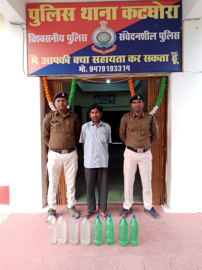 NOW HINDUSTAN पुलिस अधीक्षक कोरबा जितेन्द्र शुक्ला द्वारा जिले में अवैध शराब बिक्री पर कार्यवाही कर रोक लगाने निर्देश दिए गए थे , जिसपर अतिरिक्त पुलिस अधीक्षक अभिषेक वर्मा (रापुसे), अनुविभागीय अधिकारी कटघोरा पंकज ठाकुर (रापुसे), के मार्गदर्शन में थाना प्रभारी तेज कुमार यादव के नेतृत्व में कटघोरा पुलिस की टीम मोहलाईनभाठा में अवैध महुआ शराब बिक्री की मुखबिर सूचना प्राप्त होने पर ग्राम मोहलाईनभाठा में कटघोरा पुलिस के द्वारा कार्यवाही दौरान राय सिंह पिता सजन सिंह गोड उम्र 45 साल साकिन मोहलाईन भाठा कटघोरा थाना कटघोरा जिला कोरबा के कब्जे से अवैध महुआ शराब बिक्री करते पाया गया। उसके कब्जे से 16 लीटर कच्ची महुआ शराब किमती 1600 रूपये, बिक्री रकम 590 रूपये जप्त किया गया । पुलिस द्वारा आरोपी पर धारा 34 (2), 34 (1) (क) (ख) आबकारी एक्ट के तहत दंडनीय अपराध पाये जाने से आरोपी को गिरफ्तार कर न्यायिक रिमांड पर भेजा गया है।