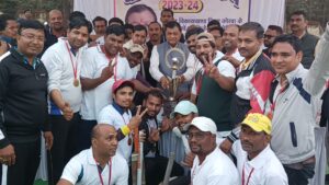 NOW HINDUSTAN कोरबा…सीएसईबी कोरबा फुटबॉल ग्राउंड में विकास खण्ड स्तरीय (बीआर सी) क्रिकेट कप प्रतियोगिता का फाइनल मुकाबला करतला ब्लॉक एवं पाली ब्लॉक के मध्य खेला गया। कार्यक्रम में मुख्य अतिथि छत्तीसगढ़ शासन वाणिज्य,उद्योग एवं श्रम मंत्री लखन लाल देवांगन रहे। यह प्रतियोगिता जिले के ब्लाक स्तरीय समस्त शिक्षको का ग्रुपों के मध्य खेला जा रहा है फाइनल मुकाबला पाली एवं करतला के मध्य खेला गया। पाली की टीम ने निर्धारित 12 ओव्हर में 143 रनों का लक्ष्य रखा था जिसमें करतला की टीम 103 रनों पर आल आउट हो गई इस तरह से पाली की टीम ने फाइनल विजेता बनी।