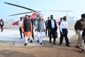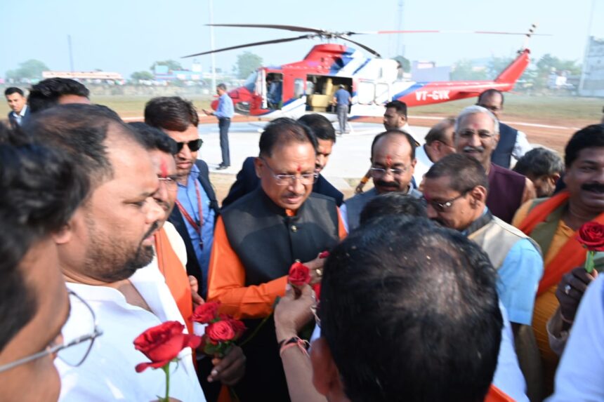 NOW HINDUSTAN गरियाबंद 07 जनवरी 2024/ भक्त माता राजिम महोत्सव में शामिल होने धर्म नगरी राजिम पहुंचे मुख्यमंत्री विष्णु देव साय का नगर वासियों ने आत्मीय स्वागत किया। मुख्यमंत्री बनने पश्चात उनके प्रथम राजिम आगमन पर जनप्रतिनिधियों और नागरिकों ने पुष्प भेंटकर मुख्यमंत्री का स्वागत किया। मुख्यमंत्री श्री साय के साथ उप-मुख्यमंत्री अरुण साव भी राजिम पहुंचे। इस दौरान राजिम हेलीपैड में महासमुंद सांसद चुन्नीलाल साहू, राजिम विधायक रोहित साहू, पूर्व सांसद चंदूलाल साहू, कलेक्टर दीपक कुमार अग्रवाल, एसएसपी अमित तुकाराम कांबले, डीएफओ गरियाबंद मणिवासगन एस, सहित अन्य जनप्रतिनिधियों एवं नागरिकों ने मुख्यमंत्री श्री साय का स्वागत किया।