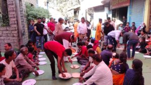 NOW HINDUSTAN श्री साई बाबा सेवा समिति, गांधी चौक, कोरबा के स्थापना दिवस पर आयोजित पालकी यात्रा के दूसरे दिन रविवार को भंडारा में बाबा के प्रसाद का वितरण किया गया। भंडारा से पहले साईं बाबा, पंचमुखी हनुमान की पूजा-आरती कर 56 भोग चढ़ाया गया। इसके पश्चात विशाल भंडारा का आयोजन किया गया जिसमें हजारों की संख्या में नगर के श्रद्धालु प्रसाद ग्रहण करने उमड़े रहे।