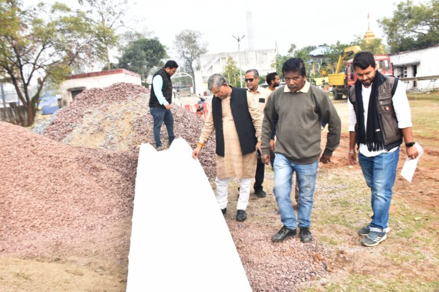 NOW HINDUSTAN कोरबा जिला नगर निगम महापौर राजकिशोर प्रसाद ने वार्ड क्रमांक-25 के अंतर्गत विश्व आदिवासी शक्तिपीठ पहुंचकर निर्माणाधीन डोम का निरीक्षण किया। उन्होंने बताया कि पूर्व कैबिनेट मंत्री जयसिंह अग्रवाल के कार्यकाल में उन्होंने आदिवासी शक्तिपीठ के कार्यक्रम के दौरान आदिवासी समाज के आवश्यकता को ध्यान में रखते हुए डोम निर्माण के लिये घोषणा की थी। समाज के लोगों के द्वारा खुले में कार्यक्रम किये जाने से कार्यक्रमों के दौरान उन्हें खुले में आयोजन करने से दिक्कतों का सामना करना पड़ता था जिसको देखते हुए उनकी मांग पर पूर्व कैबिनेट मंत्री जयसिंह अग्रवाल ने 50 लाख रु. की लागत से डोम निर्माण कराने की घोषणा की थी।