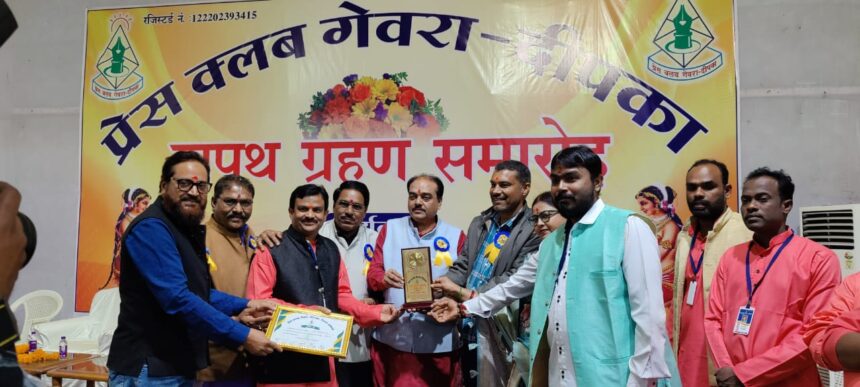 रीक्रिएशन क्लब गेवरा के खचाखच भरे प्रांगण में दीप प्रज्वलन एवं सरस्वती वंदना के उपरांत आर. एन. पब्लिक स्कूल एवम सर्वमंगला इंग्लिश स्कूल के बच्चों के सांस्कृतिक कार्यक्रम के साथ कार्यक्रम की शुरुआत हुई । इसके उपरांत मुख्य अतिथि ने प्रेस क्लब के नवनिर्वाचित पदाधिकारियों को शपथ दिलवाया व तनवीर अहमद ने प्रेस क्लब की प्रस्तावना प्रस्तुत की। इसके उपरांत समस्त मंचस्थ अतिथियों ने अपने विचार रखे।कार्यक्रम में मंच संचालन शेत मसीह व भुवनेश्वरी जायसवाल ने किया।संरक्षक वाहिद सिद्दीकी के धन्यवाद ज्ञापन के उपरांत कार्यक्रम समाप्त हुआ।कार्यक्रम को सफल बनाने में प्रेस क्लब गेवरा दीपका के सभी सदस्यों की अहम भूमिका रही ।