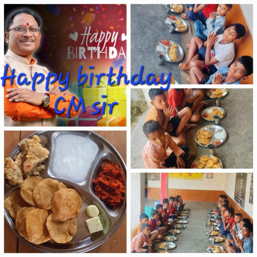 मुख्यमंत्री के जन्मदिन मनाने जिले के जनप्रतिनिधि सहित अधिकारी-कर्मचारी छात्रावास आश्रम में बच्चों के बीच पहुंचकर न्योता भोज में उनके साथ बैठकर भोजन का आनंद लिया। सभी संस्थानो में बच्चों के लिए चावल, दाल, हरी सब्जी आचार, पापड़, सलाद के साथ ही खीर, पूड़ी, हलवा, मिठाई जैसे अनेक स्वादिष्ट पकवान तैयार किया गया, जिसका लुत्फ सभी बच्चों ने उठाया।