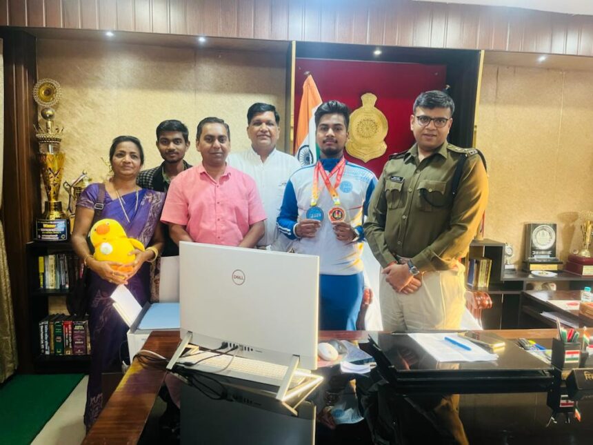 पदक जीतने के बाद छत्तीसगढ़ किकबाक्सिंग एसोसिएशन कार्यकारी अध्यक्ष के साथ खिलाड़ी एवं अभिभावक ने माननीय जिलाधीश श्री अजीत वसंत एवं पुलिस अधीक्षक श्री सिद्धार्थ तिवारी से सौजन्य भेट की। माननीय जिलाधीश श्री अजीत वसंत ने सभी को खेल के क्षेत्र में उत्कृष्ट प्रदर्शन करने हेतु शुभकामनाएं दी। पुलिस अधीक्षक श्री सिद्धार्थ तिवारी ने किकबाक्सिंग खेल विधा के खिलाड़ी को प्रोत्साहित करते हुए और मेहनत कर आगे बढ़ने की बात कही। एसोसिएशन के द्वारा अंतर्राष्ट्रीय स्पर्धा के आफिशियल शुभांकर (मस्कट) सम्मानीय जिलाधीश एवं पुलिस अधीक्षक महोदय को भेंट की गई।