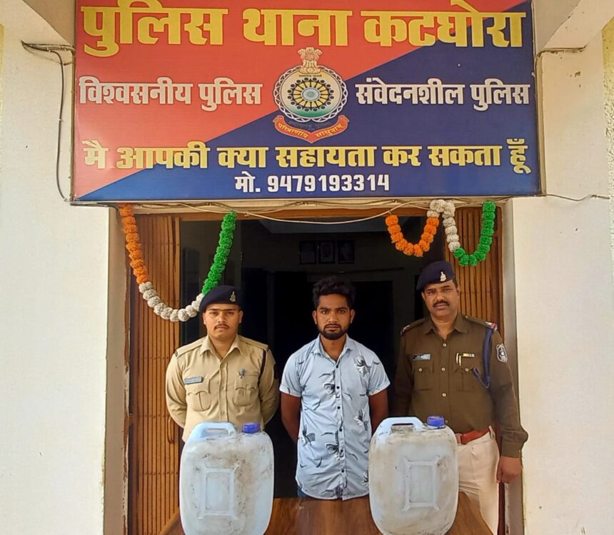 ◼️थाना कटघोरा क्षेत्र अंतर्गत मुगलही तालाब इमली पेड़ के नीचे बिजवाड़ मोहल्ला छुरी से 40 लीटर कच्ची महुआ शराब को किया गया जप्त।