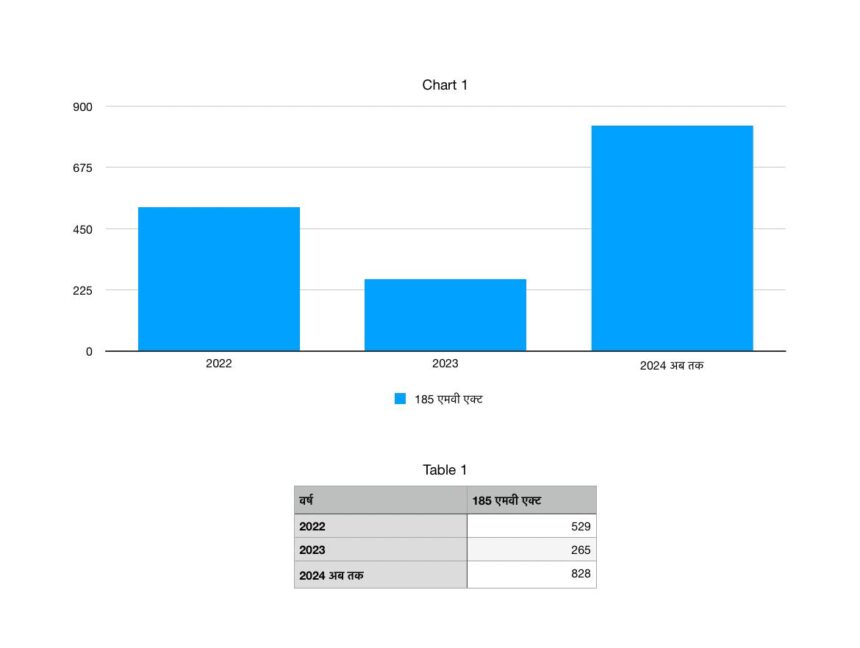 इस अभियान के तहत आज दिनांक तक ज़िले में शराब पीकर गाड़ी चलाने वालों के विरूद्ध सख्ती से कार्यवाही करते हुए कुल 828 लोगों के विरुद्ध 185 एम वी एक्ट के तहत कार्यवाही की गई है। जो पिछले पूरे साल की तुलना में इस साल केवल 3 माह में 300 प्रतिशत अधिक कार्यवाही की गई है।वही अगर पिछले दो साल का आँकड़ा देखे तो 2022 और 2023 को मिलाकर कुल 794 कार्यवाही की गई है जो इस वर्ष मात्र 3 माह में ही उससे अधिक कार्यवाही कर ली गई है।