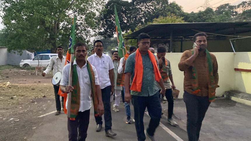 NOW HINDUSTAN korba भारतीय जनता पार्टी के वरिष्ठ नेता , युवा मोर्चा पूर्व प्रदेश कार्य समिति सदस्य विकेश झा के नेतृत्व में एवं भारतीय जनता पार्टी बाक़ी मोंगरा मंडल के मंडल अध्यक्ष लक्ष्मीकांत जगत के कुशल मार्गदर्शन में घर – घर पहुंचकर जनसंपर्क करते हुए भाजपा प्रत्याशी सुश्री सरोज पांडे के पक्ष में मतदान करने कीअपील किया जा रहा है, इसी तारतम्य में आज वार्ड क्रमांक 61 आदर्श नगर कूसमुंडा के कार्यकर्ताओं के साथ रहवासियों से घर-घर जाकर जनसंपर्क करते हुए भारतीय जनता पार्टी की नरेंद्र मोदी सरकार, छत्तीसगढ़ के विष्णु देव सरकार की योजनाएं लोगों को बताई।